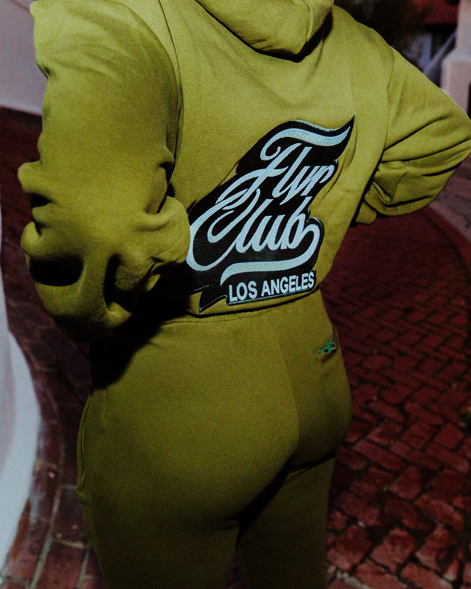 This set sold out instantly on release — the texture, fit, and craftsmanship made it one of the most sought-after FLVR drops to date. The deep army green hue gives it that clean, vintage-military aesthetic while the plush structure keeps it modern and luxe.